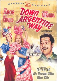 later, my mother and uncle wound up as contract players for Twentieth Century Fox, dancing in Fox musicals like “Down Argentine Way” with Don Ameche and Betty Grable. In those days, movie musicals had specialty acts, who would perform as either background or foreground to the film’s principals. Down Argentine Way’s specialty acts included my mother and uncle who did an improvised Conga number, The Nicholas Brothers (Yes, the same guys they performed with as kids), who did their dazzling tap thing, and Carmen Miranda, who sang tongue twisters in Portuguese, and always appeared with fruit on her head.