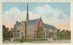 It was at this point that my family moved to the Gardens from Nassau County, Forest Hills being recommended to my father by a Jewish friend of his who worked with him in Manhattan’s garment center. Recommended as a nice place to live, and you could take the subway to work, something that appealed to my father who was tired of commuting by railroad from Long Island. So we moved right in and looked for the nearest Catholic school.